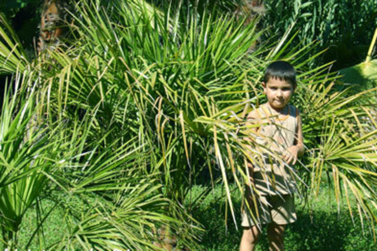 Native to the eastern coasts of Australia, this palm is called the “Cabbage Palm” by locals because its young shoot tips are edible. Its dark trunk can grow up to 20 meters. The deep-lobed fan-shaped leaves have spiny petioles. Fruits are 12–25 mm long and range in color from red-brown to black. This species is often used as a boulevard tree and is very decorative. It is frost-tolerant and has survived temperatures as low as -7°C at Palmiye Merkezi.