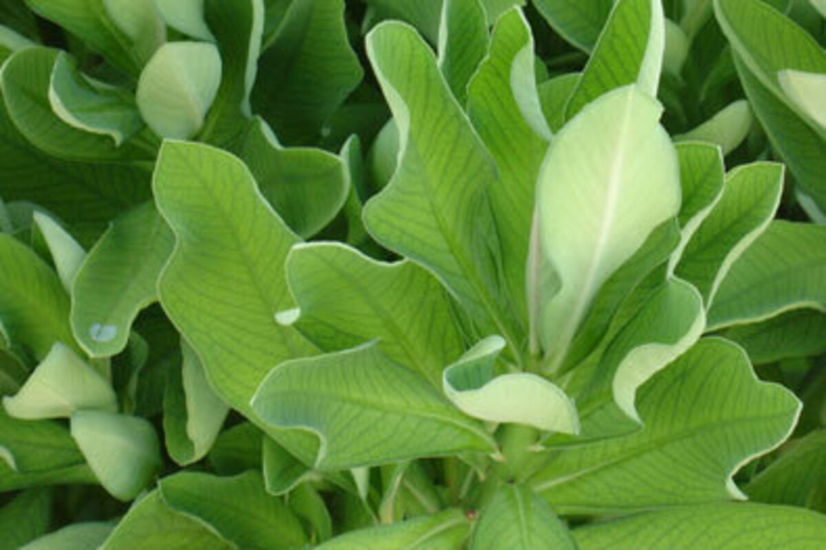 Synadenium grantii is an African plant belonging to the Euphorbiaceae (spurge) family, featuring thick and glossy green leaves. It can grow up to 400–500 cm in height. Due to its rapid growth and striking foliage, it is commonly grown as an indoor plant in colder climates. In frost-free regions, it can also be used outdoors. The plant sheds its leaves in winter.